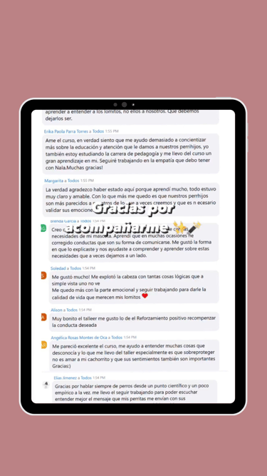 Alumnos que ya conocen mejor a sus perros y han hecho cambios para mejorar su convivencia.